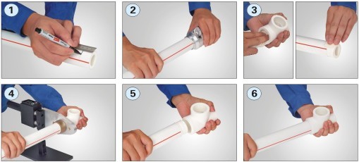 5、從卷削器內(nèi)取出管材,應(yīng)先將管件插入熱熔模具,待管件被加熱深度達(dá)到規(guī)定深度的50%時(shí),再將管材插入熱熔模具,并使管材管件同時(shí)插至模具底部。