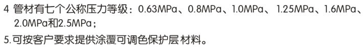 3、流體阻力小:管材內(nèi)壁光滑,其粗糙系數(shù)僅為0.009,流體阻力小,有效地改善了管網(wǎng)的水力條件,減少了系統(tǒng)運行費用。
