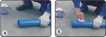 5、用布擦去管材表面多余的膠粘劑,在連接好24小時之后方可通水試壓。