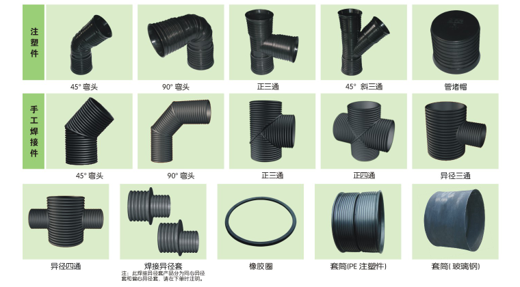 1、產(chǎn)品按GB/T19472.1-2004《埋地用聚乙烯(PE)結(jié)構(gòu)壁管道系統(tǒng)》要求進行生產(chǎn);