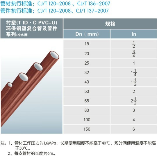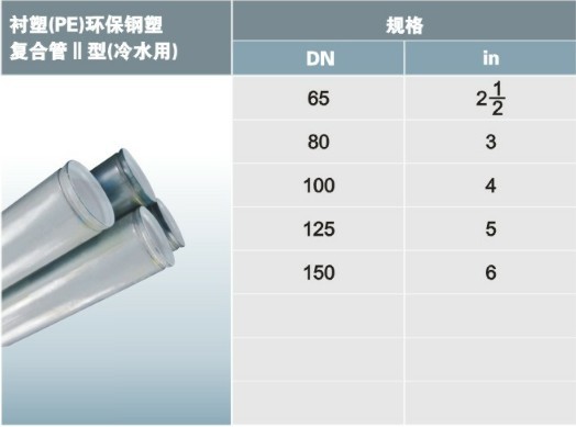 襯塑鋼塑復(fù)合管是采用鍍鋅鋼管為外管,內(nèi)壁覆襯PVC-U或PVC-C管,經(jīng)特殊工藝熱復(fù)合而成,與環(huán)保安全鋼塑復(fù)合管件配套使用。是一種無(wú)毒、無(wú)味、光滑、潔凈、不結(jié)垢、水流摩擦系數(shù)小,并且具有鋼管的硬度和堅(jiān)韌度的復(fù)合管道。